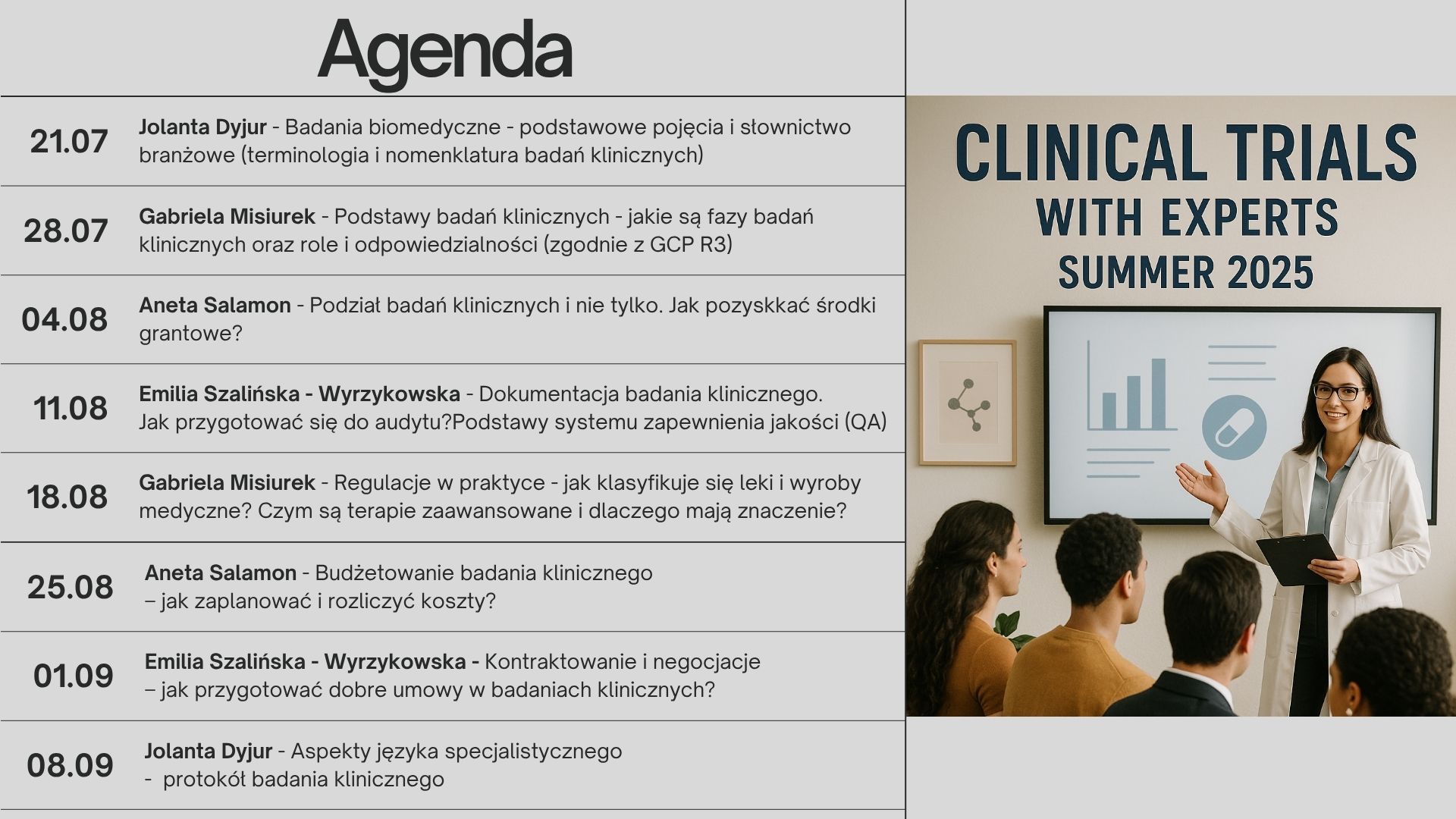 To wyjątkowa okazja, by uczyć się od najlepszych i nawiązać wartościowe kontakty w świecie badań klinicznych.